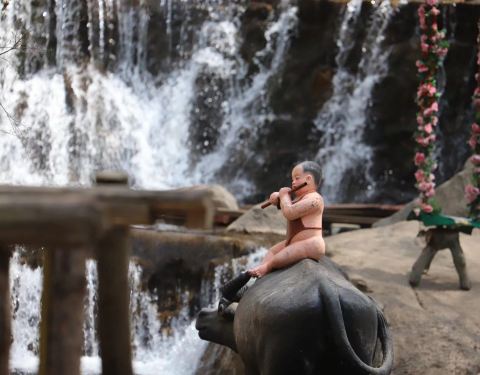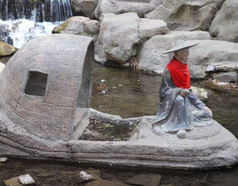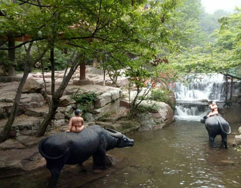 介休绵山的水涛沟,风景如画,小溪潺潺的流淌,越走到里面,景色越是很清幽,但是一路上有很多雕塑 ...介休绵山的水涛沟,风景如画,小溪潺潺的流淌,越走到里面,景色越是很清幽,但是一路上有很多雕塑 ,和景色有点格格不入,。