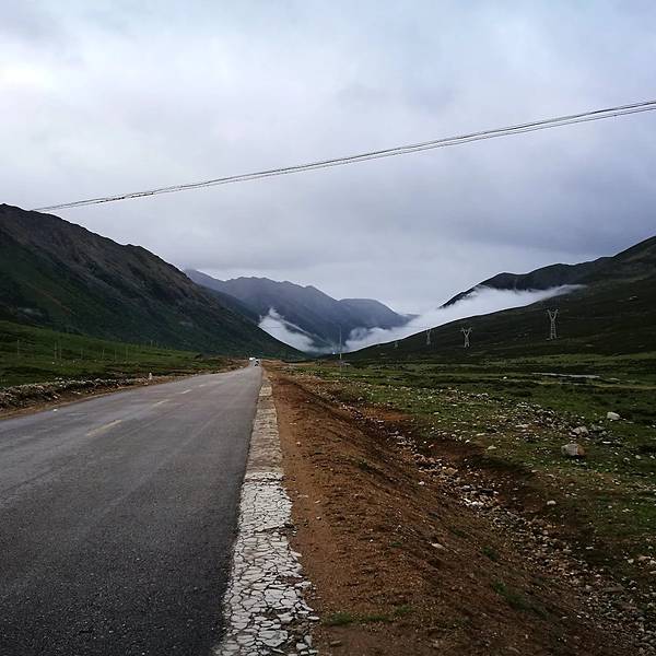 我跟他做了一天的队友,所以缘起缘灭还是很快的。前面就是东达山,国道蜿蜒着向上。山谷中起了大雾,大有向我们逼近的趋势。沿着电线杆走的小路。