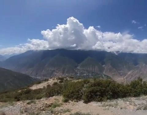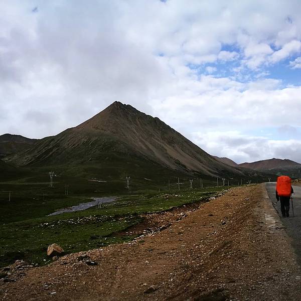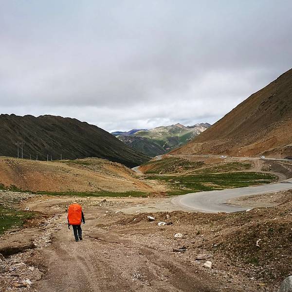 由于时间有限,所以他途搭川藏线,但是跟一般途搭的又不一样,他到目的地大约还有10公里的地方,就下车开始徒步。