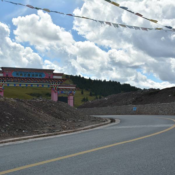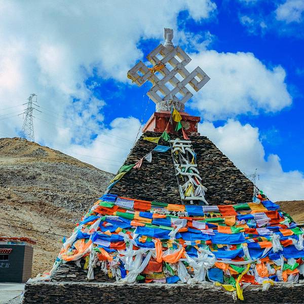 天气好,风景好,心情好。从觉巴山下来不多远,就开始翻越川藏线上的海拔最高的垭口——东达山从觉巴山下来不多远,就开始翻越川藏线上的海拔最高的垭口——东达山。天气好,风景好,心情好。这座带有藏式吉祥结标志的塔形建筑,也是东达山垭口的地标,应当是川藏线上最高点了。
