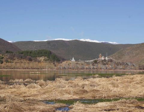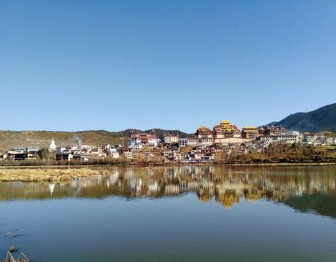 据说走到湖对岸,就可以拍到松赞林寺美丽的倒影。松赞林寺的外头,非常漂亮的一个湖泊松赞林寺的外头,非常漂亮的一个湖泊。据说走到湖对岸,就可以拍到松赞林寺美丽的倒影。不过时间关系,我们没有过去,只在松赞林寺这边走了一段。湖泊对面的山坡上有天葬台,远远看一眼就好了。藏族人对于这些还...松赞林寺的外头,非常漂亮的一个湖泊。据说走到湖对岸,就可以拍到松赞林寺美丽的倒影。不过时间关系,我们没有过去,只在松赞林寺这边走了一段。湖泊对面的山坡上有天葬台,远远看一眼就好了。藏族人对于这些还是非常庄重严肃的! 展开