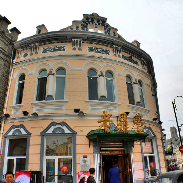 如今,走在哈尔滨市道外区靖宇街,仿佛进入一个中华巴洛克式建筑的集中展示橱窗。兴大兴超市、靖宇典当行、亨得利眼镜店、小月亮、新一代眼镜店、银金老照相馆、老鼎丰、大罗新古旧市场、玛克威商厦……经过岁月的冲刷,许多建筑虽已“老去”,但透过它们残损的外表,依旧不难想像它们当年的高贵与华丽。靖宇街上,老鼎丰前,顾客川流不息。在老哈尔滨人心中,这旧称“正阳大街”的靖宇街就如同北京的王府井,松软、酥脆的老鼎丰糕点则留存着几代人温暖的儿时记忆。老鼎丰,是哈尔滨有着百年历史的糕点老字号,坐落在靖宇街392号一栋始建于1915年的Ⅲ类中华巴洛克保护建筑内。自1911年在哈尔滨开业以来,老鼎丰的店址一直没有变迁。除了老鼎丰,在这里还藏着很多哈尔滨有特色的百年美食老店,虽说外观上都不算起眼,但这才是哈尔滨的老味道。