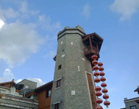 在北川新城新造的一个羌族风情的旅游点里面大多是卖食品和纪念品有很多饭店不过公共卫生间只有二个所以上个厕所人很多这个改进下就好了还是有点民族特色的
