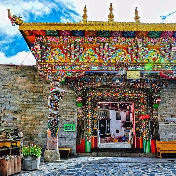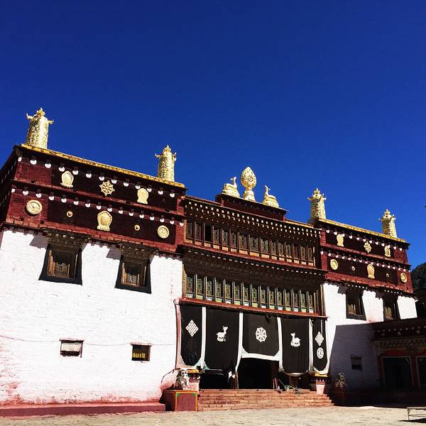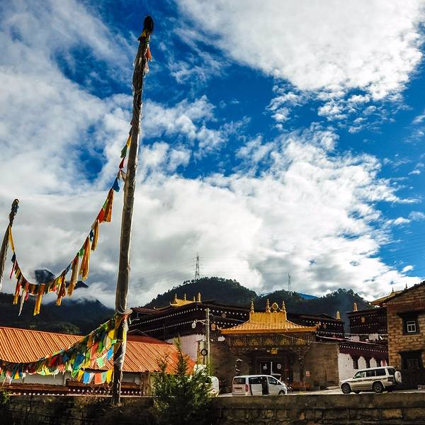 寺院是在村口的,很显眼,很宁静。寺院的屋子里面有些黑,拉着小伙伴围绕着佛像绕了一圈,拍拍照就走了行车快到香格里拉镇的时候,就来到这个寺庙了。很精致,凸显出信徒的虔诚