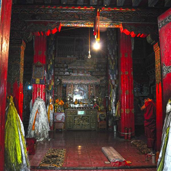 ...,没有其他游客,喇嘛们在院子里休息,殿内和其他寺院一样很暗,墙壁上的壁画很精美,而且故事性很强进入亚丁之前,会在路边看见这座寺庙,我们是返城的时候停车进入参观的,里面除了我们一车人,没有其他游客,喇嘛们在院子里休息,殿内和其他寺院一样很暗,墙壁上的壁画很精美,而且故事性很强。
