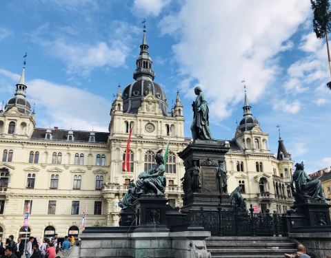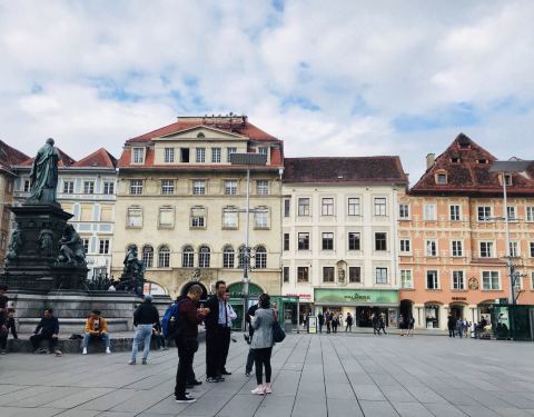 广场不算大,但总的感觉广场其实挺热闹,有各种各样的小店卖各种吃的或是纪念品老城中心广场其实就是格拉茨市政厅前面的那个广场。广场不算大,但总的感觉广场其实挺热闹,有各种各样的小店卖各种吃的或是纪念品。
