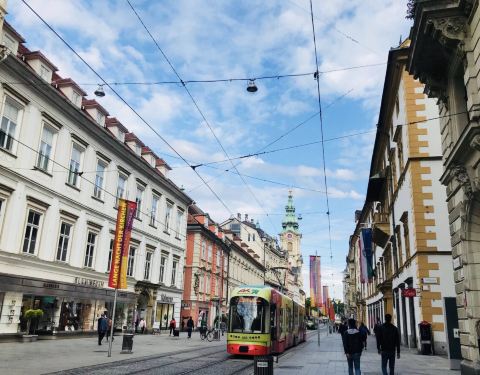 实用 看看斜晖下的格拉茨,金灿灿的一片,晚餐就可以选择山顶上的一家餐厅,从高处欣赏一把华灯初上时的万家灯火中央广场是格拉茨最繁华也是最热闹的地方,修建于1160年,周围有许多历史悠久的建筑。中央广场中心是约翰大公爵的塑像,远处便是城堡山,还有教堂等。广场四周都是各式各样的商店,衣服、首饰、化妆品、奢侈品,...中央广场是格拉茨最繁华也是最热闹的地方,修建于1160年,周围有许多历史悠久的建筑。中央广场中心是约翰大公爵的塑像,远处便是城堡山,还有教堂等。广场四周都是各式各样的商店,衣服、首饰、化妆品、奢侈品,是个逛街shopping的好去处。【推荐路线】可以选择在中午时分来到中央广场,然后在附近的经典餐厅慢悠悠饱餐一顿,然后放松心情,好好在Graz中央广场逛逛街,看看他的有着数百年历史的建筑和街道,和墙上的涂鸦,体验一下奥地利极慢的生活节奏。然后五点左右,徒步爬上城堡山,正好能赶上日落,看看斜晖下的格拉茨,金灿灿的一片,晚餐就可以选择山顶上的一家餐厅,从高处欣赏一把华灯初上时的万家灯火。【关于购物】中心广场附近的商店主要以服装和奢侈品为主。有HM,Zara,Mango之类的快消式的服装,也有一些私人订制的衣服,光看看这些手工作坊的橱窗都觉得是一种享受。【小贴士】欧洲小城生活节奏之慢真的是我没有想到的。六七点商店全部关门,就只剩下一些餐厅还能游客们留点活路。要知道5月份的欧洲晚上八点多天还是两者的,在街上应该是除了吃饭就不知道干嘛了吧~所以,如果要逛街,请一定一定一定要记得在下午,不然晚上就只能window shopping啦~在格拉茨第一次体验了一把大白天因为要关门被赶出来的心塞…… 展开