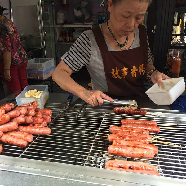 在这一条桥的周边很多商铺卖天灯的哦,在这条桥上放天灯还是挺有feel的,只可惜我是一个人走(此处一万个草泥马)平溪老街,这条老街吃的东西挺多的,其中较为好吃的算那个烤肠莫属了,烤肠店一共有两家,排队的人也很多~~泡菜烤肠不得不说,这个老板太会做生意了,那些年同款鸡蛋冰!NT20