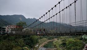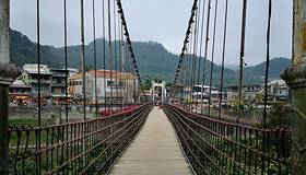 在平溪车站的对面有一个叫静安桥的景点,看样子已经很老了,但还是很多人很多人都会上去走走。我们刚好走到对面。就封桥了,因为有一段正在更换木条。