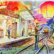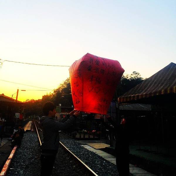 平溪站,这里据说才是天灯的发源地,天灯活动也是在这里进行的。在候车的站台旁,看到一个小店,里面的天灯的明信片非常有特色,都是手绘的,很喜欢那种祈愿的感觉,单纯而虔诚正好看到铁轨上一对情侣在放天灯,希望他们...平溪站,这里据说才是天灯的发源地,天灯活动也是在这里进行的。在候车的站台旁,看到一个小店,里面的天灯的明信片非常有特色,都是手绘的,很喜欢那种祈愿的感觉,单纯而虔诚正好看到铁轨上一对情侣在放天灯,希望他们心愿顺遂平溪线最后一次搭小候车。傍晚的火车,暖暖的橘色,给人分外暖意