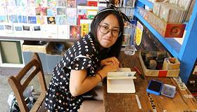 - ...台旁,看到一个小店,里面的天灯的明信片非常有特色,都是手绘的,很喜欢那种祈愿的感觉,单纯而虔诚