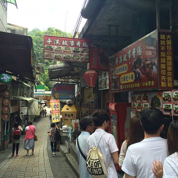 在这一条桥的周边很多商铺卖天灯的哦,在这条桥上放天灯还是挺有feel的,只可惜我是一个人走(此处一万个草泥马)平溪老街,这条老街吃的东西挺多的,其中较为好吃的算那个烤肠莫属了,烤肠...平溪线第二站—平溪站