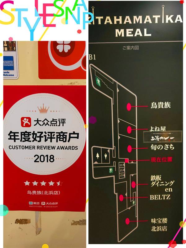 刷环球影城真的是很耗费体力。虽然精神上一直处于亢奋状态,但毕竟年纪大了,身体硬件撑不住了。回到酒店,我们一边给手机充电,一边给自己充电,直到晚上8点出发,前往最近的鸟贵族(北浜店)。 来日本大家一般都会选择吃一顿烧鸟。鸟贵族是家连锁店,算是日本所有吃烧鸟的店里价位相对较低,性价比较高的一个选择。居酒屋位于地下一层,不是很好找。店里本地人非常多,满屋子的聊天声、欢笑声、酒杯碰撞声,伴随着浓浓的烤肉的香气,这就是居酒屋该有的样子呀! 店里是自助点餐的模式,所有餐品都是327日元,含税(日本所有消费都是含税的)。我们点了葱烤鸡肉、烤牛肉、青椒肉串、烤五花肉、鸡肉泡饭……每一个都很好吃,最后我们心满意足地迈着方步离开。 哦,对了。我还在店门口看到了大众点评网红店的证书。怎么说呢?我有种中国互联网,要统治全球的赶脚!