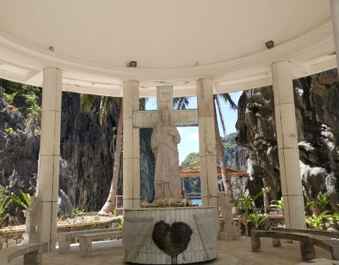 Matinloc Shrine其实就是这个小岛上的一座拥有圣母玛丽亚雕像的小亭子,然而它最出名的明信片风景是山顶部的鸟瞰全景。