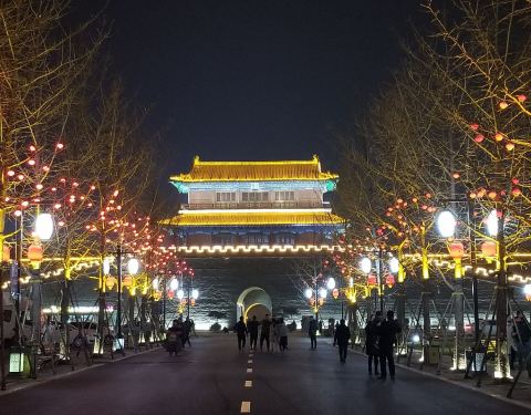 推荐夜游!打车到古城南门开始游玩,一下车就觉得眼前一亮,夜景好美啊。感觉这是石家庄最值得夜游的地方