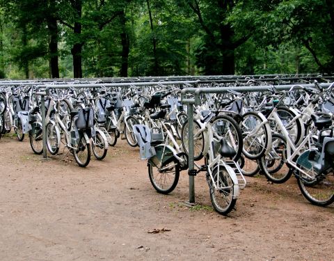 通过公园内免费提供的白色自行车,可以走遍公园的所有角落。