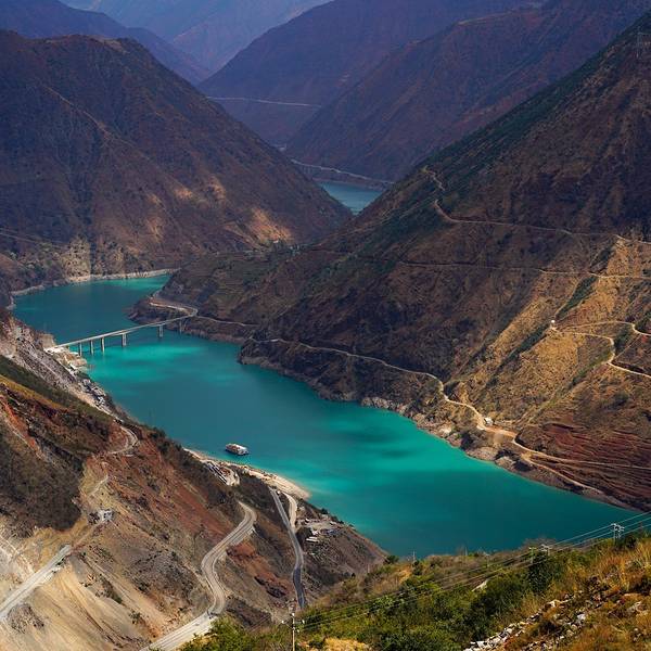 我们沿着金沙江东岸南行,前面就是阿海水电站了赭色的岩壁,碧绿的江水。我们沿着金沙江东岸南行,前面就是阿海水电站了。。车过水电站,再次翻山越岭,经过玉龙雪山,整整五个小时之后,丽江城再次近在眼前。。