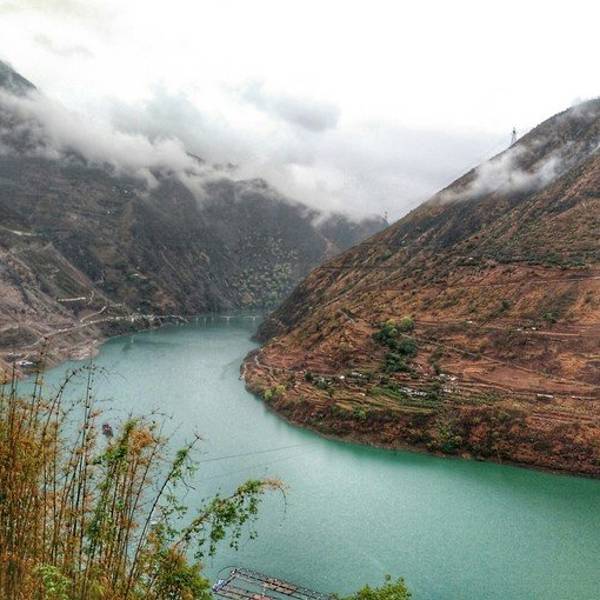 想想那边就是西藏界内了,整个人仿佛来了力量。被金沙江围绕的一个小村子。遇到金沙江后有...这里就是巴河和金沙江的交汇处。