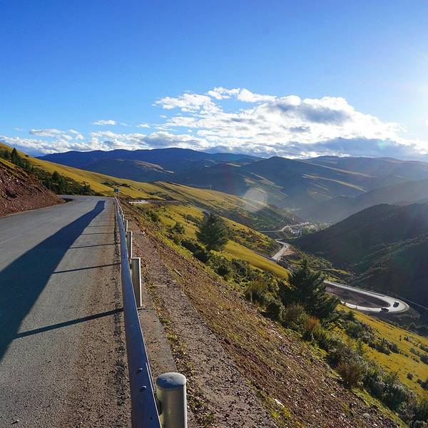 中午在路边解决午饭,继续沿着山谷前进。这一路虽然坡度不陡但是很熬人,最要命的是临近傍晚,竟然还有一座山要翻过去。10km的 盘山 道,腿都快骑抽筋。明洞是防御泥石流的最好办法。这条路看来已经饱经沧桑了。下午四点半开始爬坡,在体力已经消耗大半的情况下,这段 盘山 道几乎爬到崩溃。从谷底的河边盘旋抬升到高山上,骑这几公里就如同登天一样,比走路也快不了多少。林木被草原取代,现在应该到了4000米海拔,终于又返回天上了。继续加油,胜利在望。小石同学也撑了过来,而且有开车的游人送了罐红牛给他,不愧是小鲜肉,还是招人待见。宗拉山垭口海拔4000米出头,相对来说不算高,但是放在日程的最后阶段,就需要拿出全部的体力和意志来应付。下山就不用说了,放开速度冲进县城心里才平衡些。