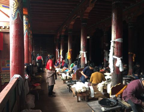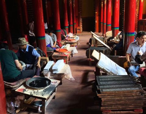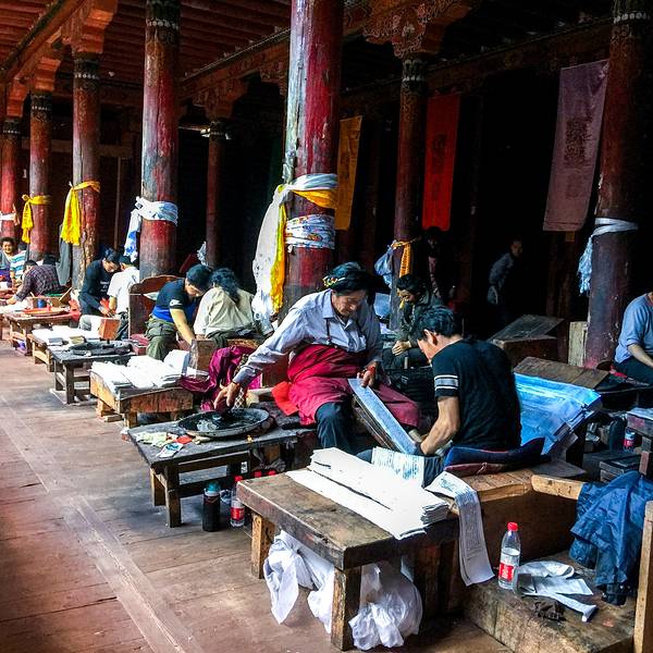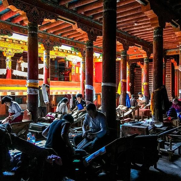 德格印经院规模并不是很大,但如果你走进去就会被那数量惊人的刻板所震撼。早上有很多信众围绕着经院转圈德格印经院规模并不是很大,但如果你走进去就会被那数量惊人的刻板所震撼。我们恰巧碰见工人在印刷经文,真算是开了眼。早上有很多信众围绕着经院转圈。