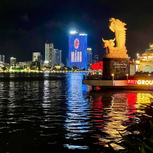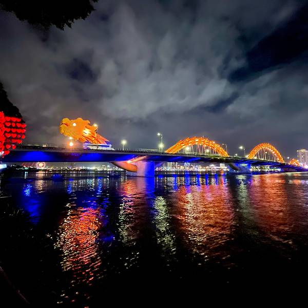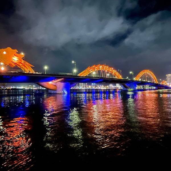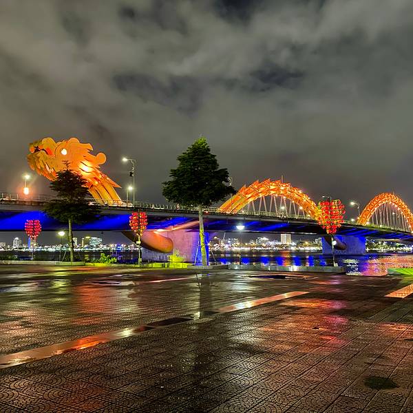 横跨在汉江上成双成对的龙桥和汉江桥,全长500多公尺的龙桥,龙身有500多盏LED灯,夜晚会变换各种颜色,每到周六和周日晚上九点,龙头会有喷水...越南🇻🇳岘港【龙桥】
