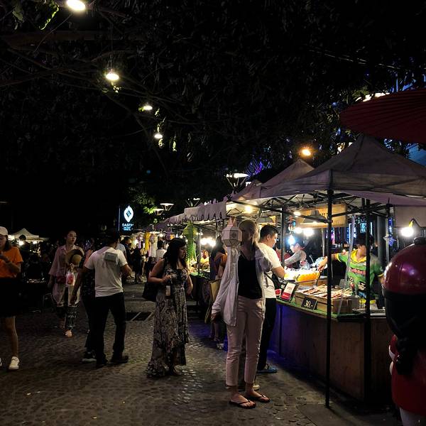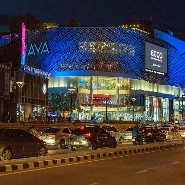 玛雅购物中心坐落在古城外,与宁曼路一街之隔。位置便利,里面有许多有名的品牌入驻,还有设备先进的电影院。 建筑外观惹眼,标志性显著,在这可以悠闲购物,也不会有游客抢货的情况。一到三楼囊括了各种时尚品牌和数码店铺,尤其有许多泰国本土设计师的品牌非常值得一看。四楼是美食区域,五楼则有电影院、卡拉OK和游戏区,顶楼是观景平台和酒吧派对区。