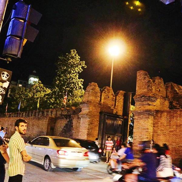 我们的晚餐吃了2次,一次是在下车处,凤飞飞猪脚饭,这是清迈夜市上的一家小摊,但是却有着清迈最著名的猪脚饭,很多当地人都会来吃饭哦,位于清迈北城门昌卜克夜市小摊上,面对着7-11超市向左手边走,看到带着牛仔帽的美女老板娘就是了,因为老板戴着凤飞飞样式的帽子酷似而得名。他家的特色也就是猪脚饭。猪脚软烂入味,配上泰国的香米,简直是好吃到爆,一盘猪脚饭只要30泰铢,但是分量比较小,只有晚上才出摊,因为是夜市嘛,可以坐在后面的简易桌子上吃,也可以外带,老板娘看见你拍照还会非常配合的笑笑,而且还会讲中文。