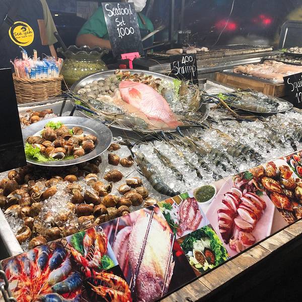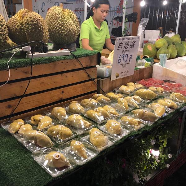 MAYA对面有个小夜市 好多好多吃的 但我们已经吃饱了榴莲自助!最后只买了两杯菊花茶 60B 好多冰哦后来在MAYA一楼还是负一楼买了一堆药品回去依旧是双条车回去 80B