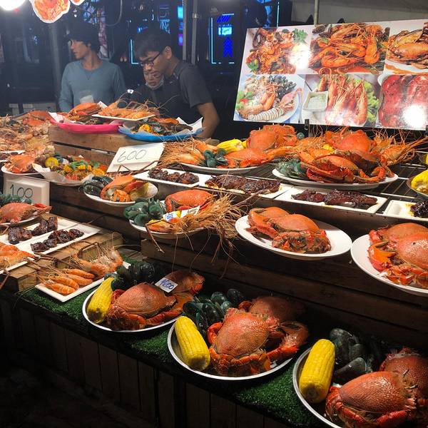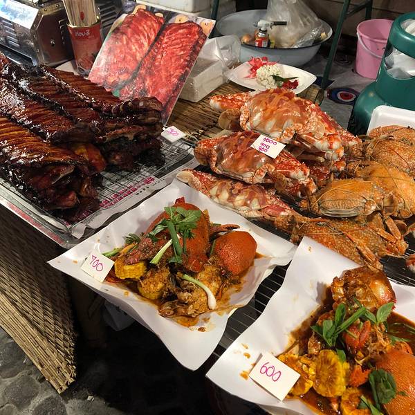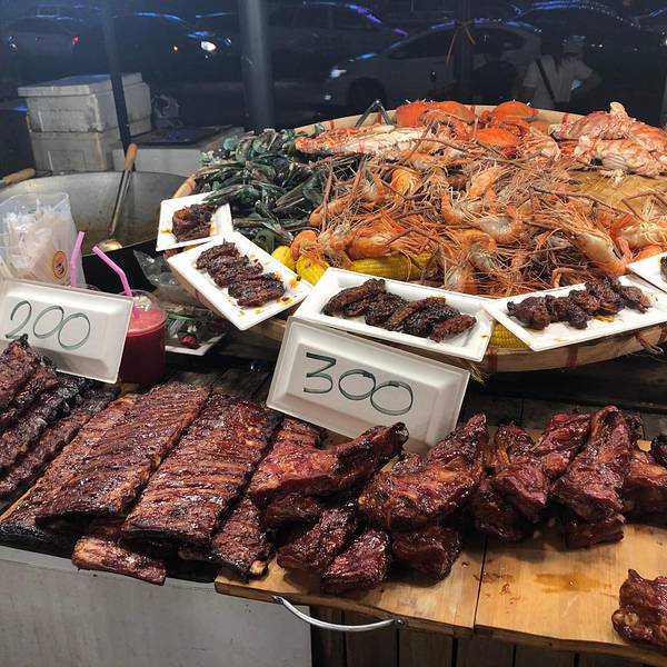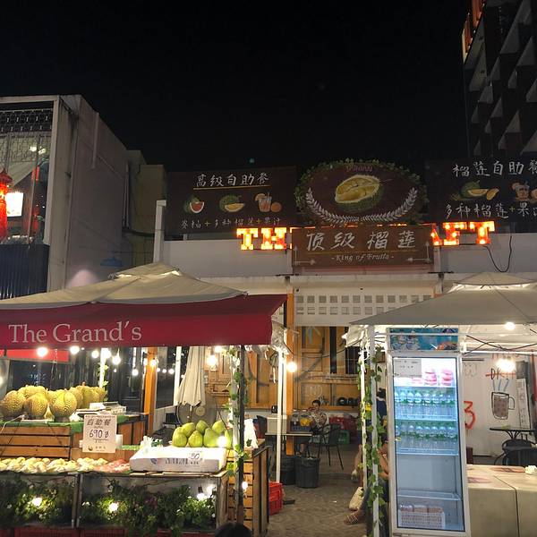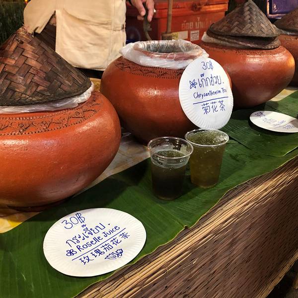 MAYA对面有个小夜市 好多好多吃的 但我们已经吃饱了榴莲自助!最后只买了两杯菊花茶 60B