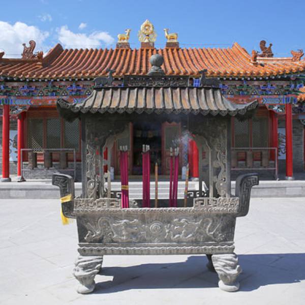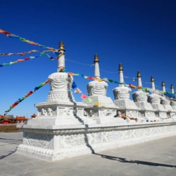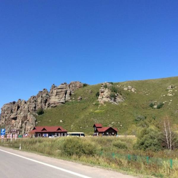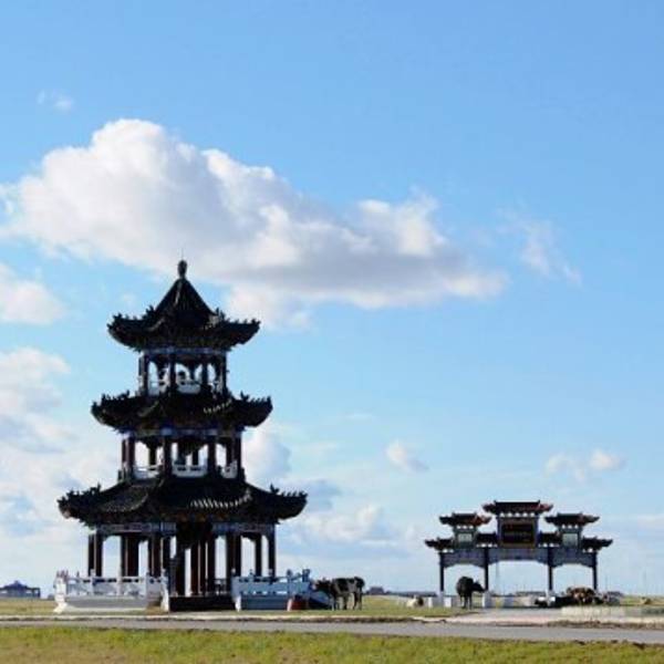成吉思汗拴马桩,位于呼伦湖西岸,距新巴尔虎右旗所在地阿拉坦额莫勒镇38公里,离满洲里市88公里,是一处三面环水的峭壁。南临一湖碧水,放眼望去,石壁嶙峋峭拔,光滑如刀削;北、东面呈陡坡,下临湖湾,只有西部为缓坡与湖岸相连,山顶上有一座高大的凉亭。在山崖东10余米的湖水里,有一座高约10米、周长20多米的柱石突兀而立,柱石呈不规则形,上细下粗,石纹条条,纵横交错。传说,成吉思汗曾经在这里训练兵马,把他心爱的八匹骏马拴在这个柱石上,柱石因此得名,并且成为草原上一道亮丽的旅游景点。