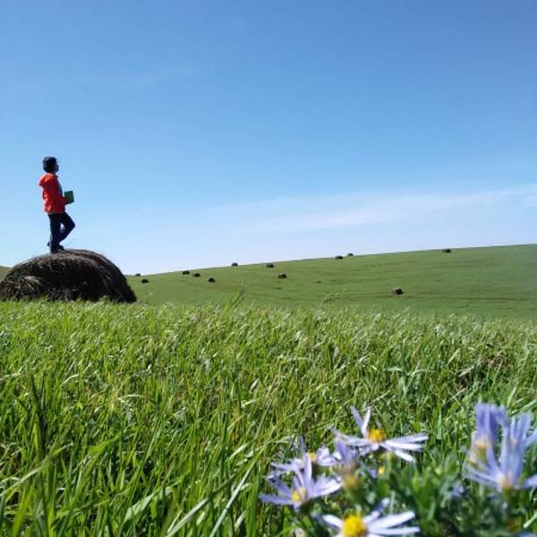 呼伦湖十分壮观,拴马桩在呼伦湖西岸,是成吉思汗当年驻军休养生息的地方。