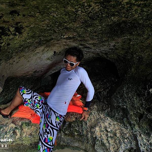 燕子洞是爱妮岛跳岛游的线路游览的其中一个景点,导游和船夫都会带领着大家进入洞穴,因为的入口很窄小,人要想通过就必须是导游先进去做个示范动作,而且入口的岩石都是被海水侵蚀后有菱角,容易刮伤,细心而富有经验的导游会在洞口铺上带来的救生衣,让大家坐上去慢慢钻进洞穴。洞穴有亮光,因为上面是透顶的,顶部很窄,我们进去后都觉得真的是别有洞天,空气、气温、湿地都很宜人,里面还真的挺舒服的,很特别的地方,来了一定要进去走走。