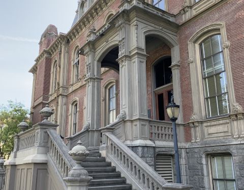 学校里面的巨大草坪和历史悠久的图书馆建筑都看上去十分的漂亮 围绕着钟塔布局的学校看上去就有端庄的气质