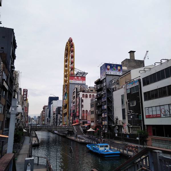 如果持有周游券,当然要乘坐水上观光船来游览道顿堀川两岸风光,毕竟免费呢。财神爷摩天轮旁的太左卫门桥下是搭乘点,运营时间为平日13:00-21:00,周末、节假日及繁忙时期11:00-21:00,每半小时一班,航程20分钟。导游是用日语讲解的,听不懂也没关系,欣赏风景和拍照才是重点,而听关西腔的日语也挺有趣的。