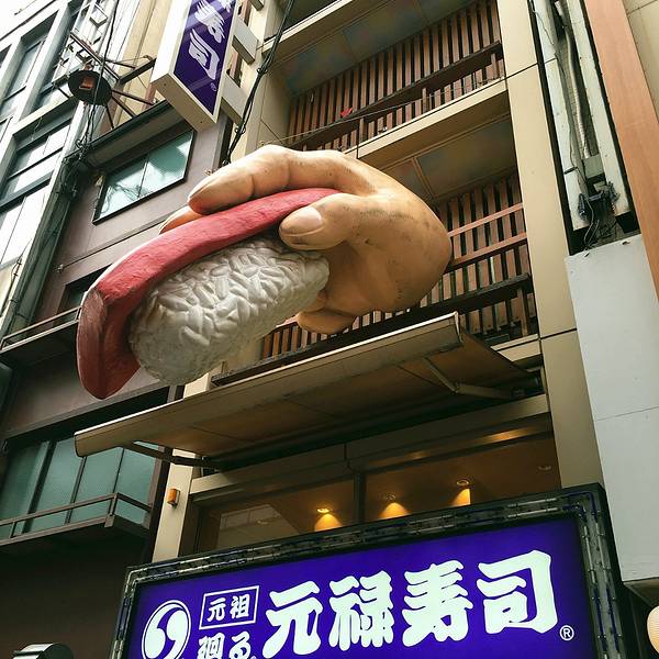 - 因为这里的餐厅招牌都非常巨形,例如抓寿司的手、长脚蟹、章鱼等等,都比我们平常看到的大好几十倍,...实用