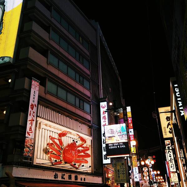 道顿堀位于心斋桥的南端,毋庸置疑是大阪最繁华的商业区,也是吃货们集聚的美食据点,如拉面、章鱼烧、河豚料理等及应有尽有。作为动漫中常出现的景点,道顿堀川运河两侧的巨型广告牌也很吸睛,其中格力高人形看牌和蟹道乐的大螃蟹招牌最让人印象深刻。蟹道乐在道顿堀有三家店面,本店的招牌最大。午市套餐人均约3000-4000日元,比较划算。晚餐消费人均约6000-8000日元,比较贵。在店里能品尝到不同做法的螃蟹,如煮蟹肉、蟹肉焗饭、铁板蟹等,是吃蟹爱好者必去之地。道顿堀川旁常会举行偶像表演活动,许多偶像组合轮番上阵表演,而粉丝们则在对面呐喊助威,我算是切身体验到他们那撕心裂肺的狂热。