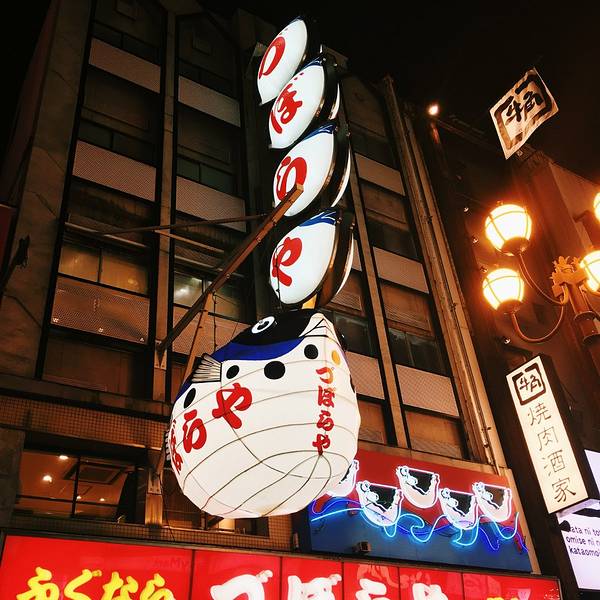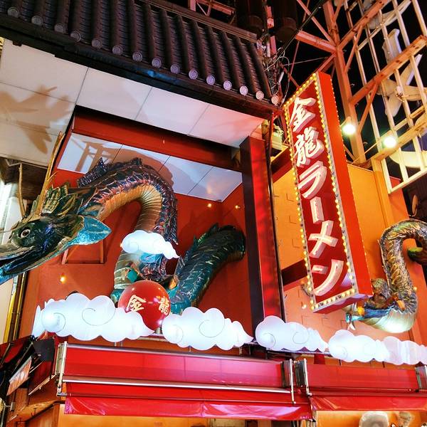 - 许多著名的小吃像金龙拉面、章鱼烧、回转寿司、河豚肉等在这都可以吃到