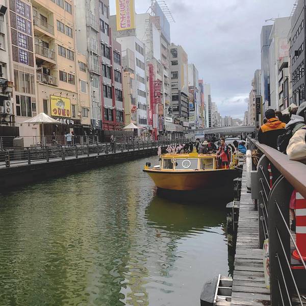 【观光】大阪周游券可以乘坐道顿堀河的观光船,可以穿过几个桥,从河面感受这个街区,也是不错的体验哦