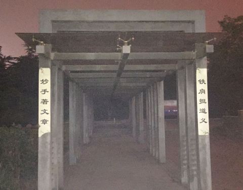 晚上散步至大钊公园,发现夜间此地没有任何灯光照明,不敢深入,只能就着路边灯光拍了一张对联留念,...