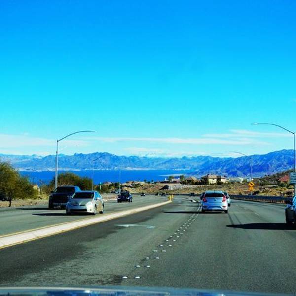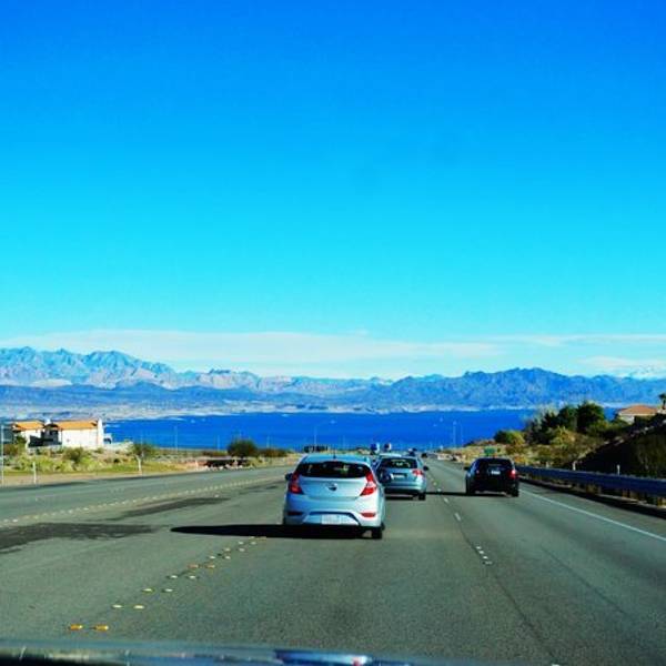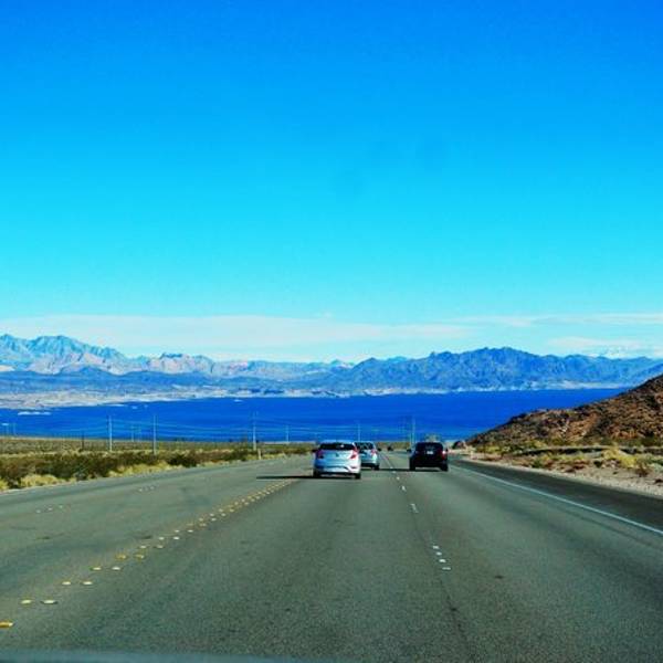 通往米德湖的道路很畅通,行驶条件良好,坐在车里,望着窗外的蓝天白云,心情特别舒畅...米德湖(Lake Mead)离拉斯维加斯不远,约40公里,如果自驾不用一小时就到了。到了拉斯维加斯,千万不要放弃去米德湖看看。