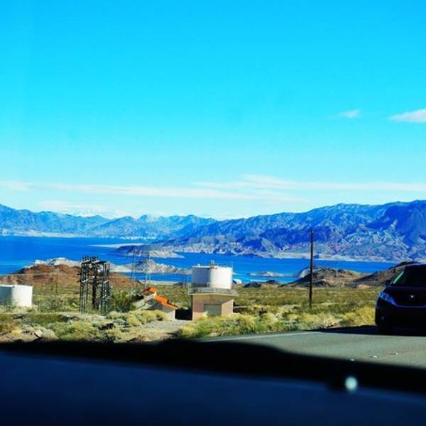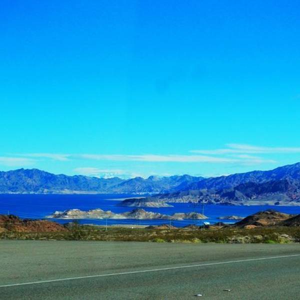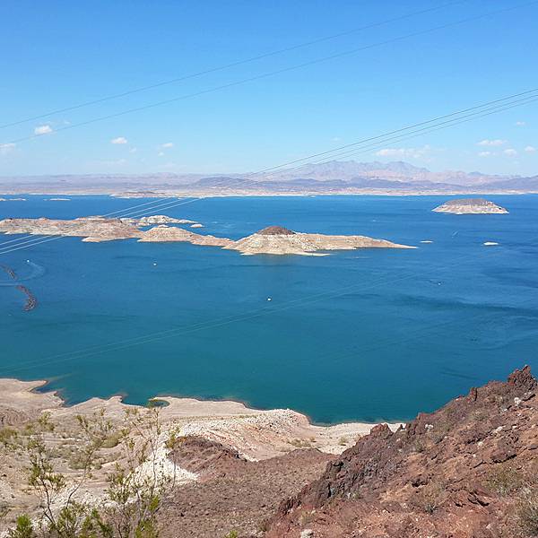 其实与其说他是湖 还是算胡佛大坝的蓄水池更合适些 也因为这样 整个湖面非常平静 建议停个车 在观景台望一眼这位安静的美男子拉斯维加斯往胡佛大坝的路径 有可能会遇上米德湖 Lake Mead 就是这个看起来路尽头的湖啦