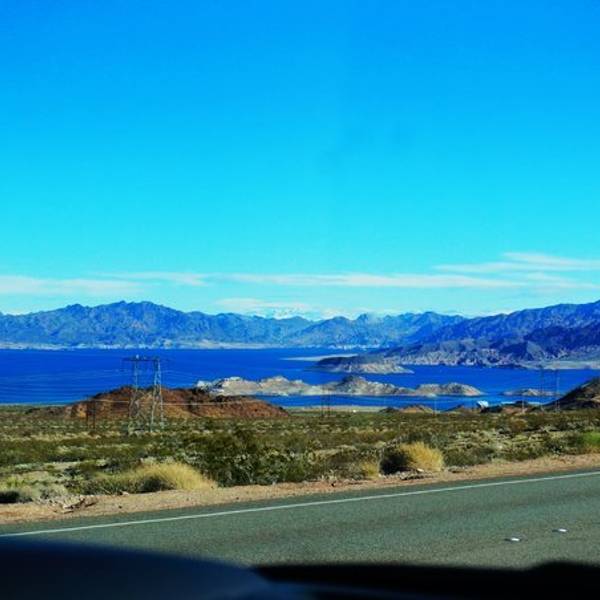 忍不住臭美一下胡佛水坝回拉斯维加斯的方向,有一处湖泊,湖水蓝蓝的。于是下来看看。额,回来看了下地图,才知道那是著名的lake mead。lake mead是一个方圆达63900公顷的人工大湖, 在美国亚利桑那州和内瓦达州的交界处, 东距...胡佛水坝回拉斯维加斯的方向,有一处湖泊,湖水蓝蓝的。于是下来看看。额,回来看了下地图,才知道那是著名的lake mead。lake mead是一个方圆达63900公顷的人工大湖, 在美国亚利桑那州和内瓦达州的交界处, 东距拉斯维加斯40公里(25miles)。 由科罗拉多河上的胡佛大坝拦蓄而成。