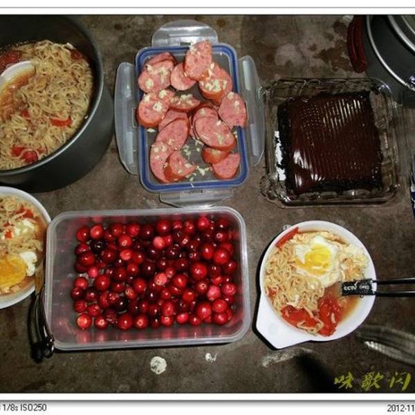 赶紧开火做饭,西红柿炖方便面、鸡蛋火腿三明治、蒜末肉肠、餐后甜点黑森林、蔓越莓。吃饱了躲在车里上网,今天外面的风很大,但内心很温暖很平静,我们有自己的车啦。早早睡下,明天见。 展开