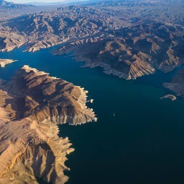 米德湖在美国亚利桑那州和内华达州交界处,东距拉斯维加斯40公里(25哩),由科罗拉多河上的胡佛水坝拦蓄而成,是世界最大人工湖之一。