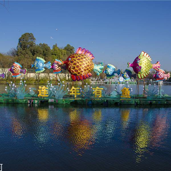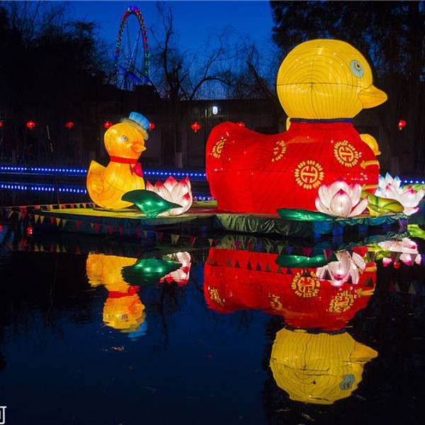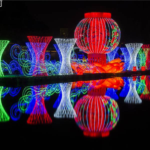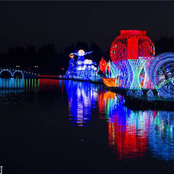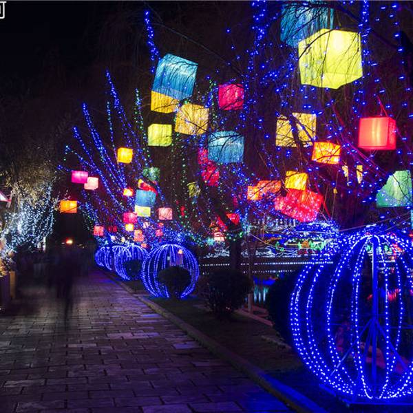 这段时间除了海鸥以外,每天晚上从19:00开始(实际上18:30就开始亮灯了)都有灯会,夜色下放在湖里的彩灯五彩斑斓非常漂亮,公园里晚上的游客比白天还多。