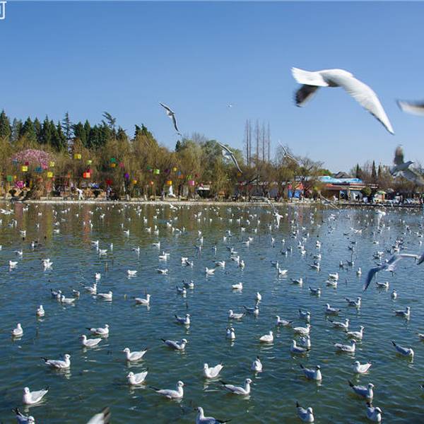 实用 冬天里大观公园有许多从西伯利亚飞过来越冬的海鸥大观公园紧邻滇池,冬天有许多海鸥,非常值得一去。