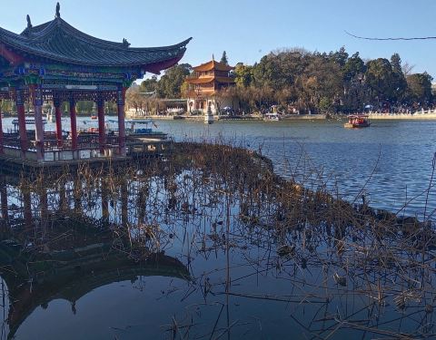 一决定要去大观楼就上网买票,等坐公交到那就可以顺利取票了。公园里有很多来过冬的红嘴鸥。