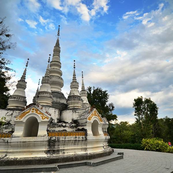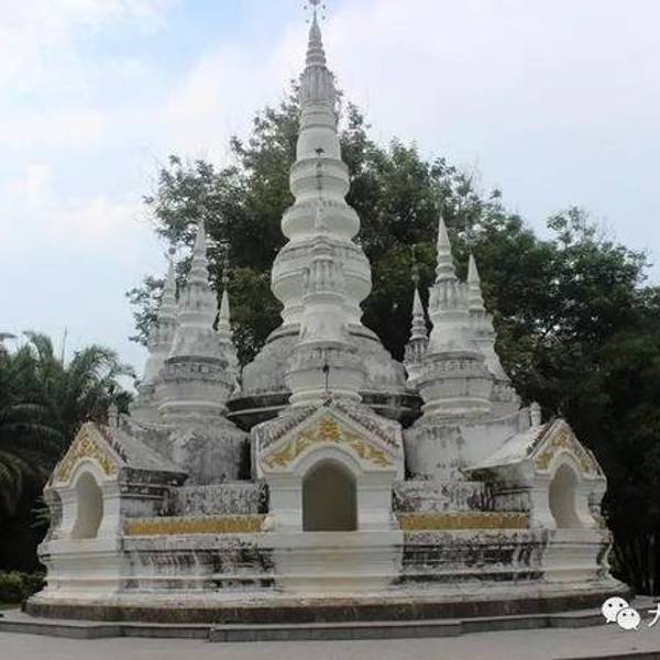 ...着一座因历经风雨洗礼而呈灰白色的古朴凝重的大型傣式笋塔,它就是西双版纳的标志之一——曼飞龙白塔上到低矮的山顶,眼前豁然开朗,展现出一片空旷的平地,中央屹立着一座因历经风雨洗礼而呈灰白色的古朴凝重的大型傣式笋塔,它就是西双版纳的标志之一——曼飞龙白塔。只见它的中间是一个最高大的笋塔(顾名思义...上到低矮的山顶,眼前豁然开朗,展现出一片空旷的平地,中央屹立着一座因历经风雨洗礼而呈灰白色的古朴凝重的大型傣式笋塔,它就是西双版纳的标志之一——曼飞龙白塔。只见它的中间是一个最高大的笋塔(顾名思义状如竹笋),而四周则围着一圈较矮小的笋塔,线条圆润流畅、古典优雅,是一种较典型的傣塔造型。附近还有一座站立的大金傣佛像和一只傣式大白象,均有神兽(狮、虎、狗、猫等混合体)守护。 展开