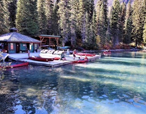 翡翠湖是幽鹤国家公园里不容错过的景点,这里的湖水真是绿的像翡翠一样,划船畅游在这宝石般的湖水里...翡翠湖是幽鹤国家公园里不容错过的景点,这里的湖水真是绿的像翡翠一样,划船畅游在这宝石般的湖水里,70加元一小时,虽然不便宜,但是很值得尝试一下