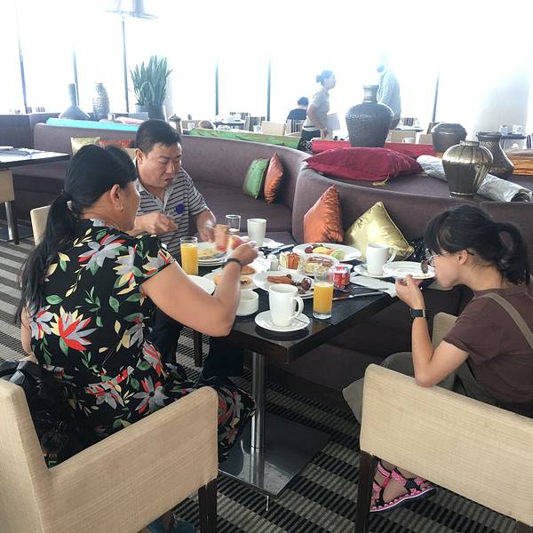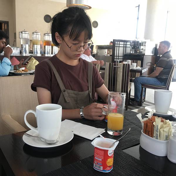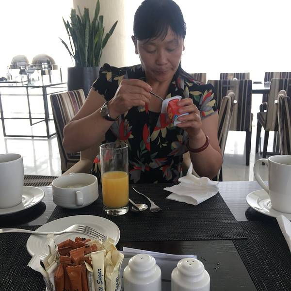 酒店早餐看来挺合胃口吃酸奶的小女孩吃全民超神的妈妈